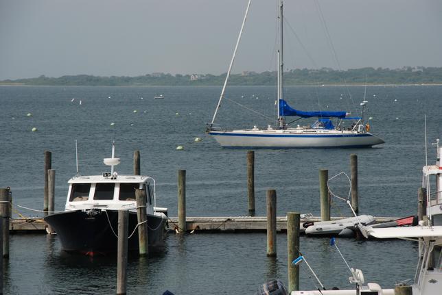 Frog's Leap moored off the basin. Outside the peak season the Island takes on.. well, an Island pace. Bumper stickers stating "slow down, this is not the mainland" appropriately convey the sense of priorities exhibited by the locals. This philosophy drove away large development interests (condo builders, large resorts) and has preserved the quality of fauna, flora, food, and friendly local residents. You could be eating at a bar, sitting between a very rich person on one side, and the opposite on the other, without knowing which is which. This is a casual place, not one for arrivistes. No miracle mile shopping district can be found.